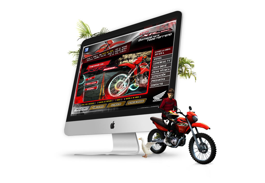 Juego en web para la marca Honda (XR 125L), seleccionas el recorrido de la moto en la Costa, Sierra y Selva y procedes a jugar.