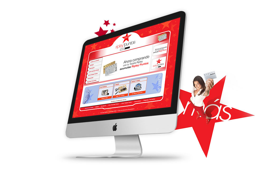 Site de Ripley Puntos, la primera versión. Entorno de acceso a la web informativa de la modalidad de acumulación de puntos utilizando la Tarjeta Ripley.